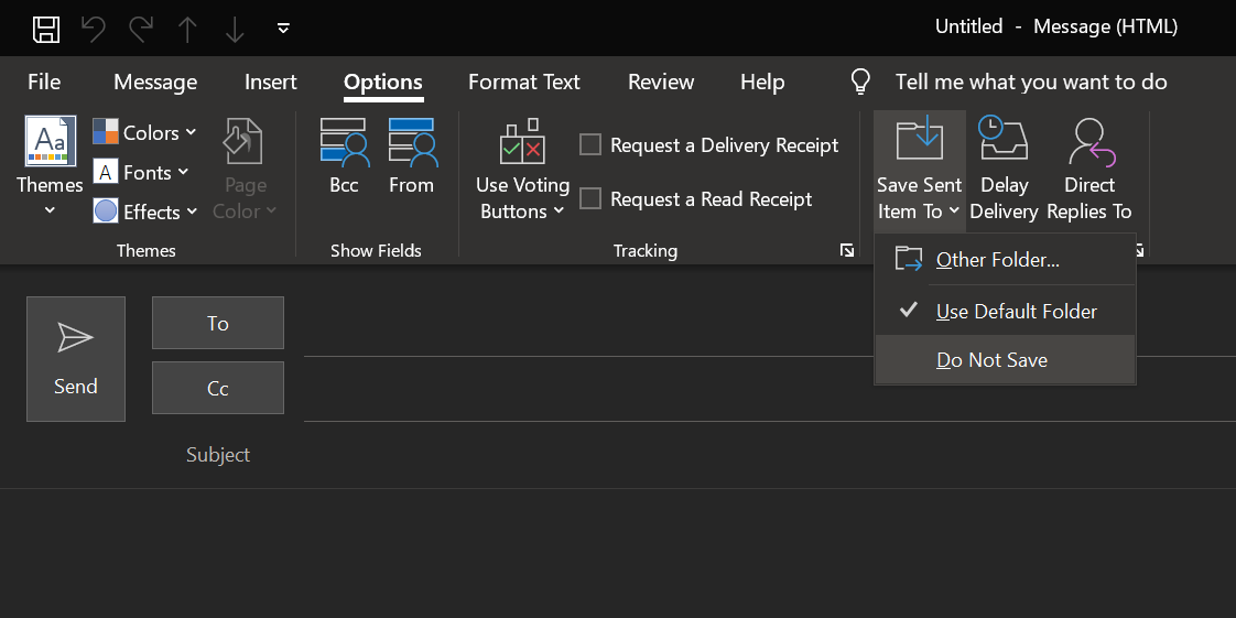 You can prevent sent emails from storing in your inbox per-email. This way, you can choose the emails that you want to use this feature on. Here’s how to stop Outlook from saving your specific sent emails: