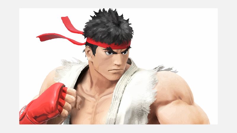 The fine detail is stripped from the raster image and smoothed into mathematical shapes that are easier to manipulate into larger formats. Up close, the images appear quite different. But consider the original Ryu image: